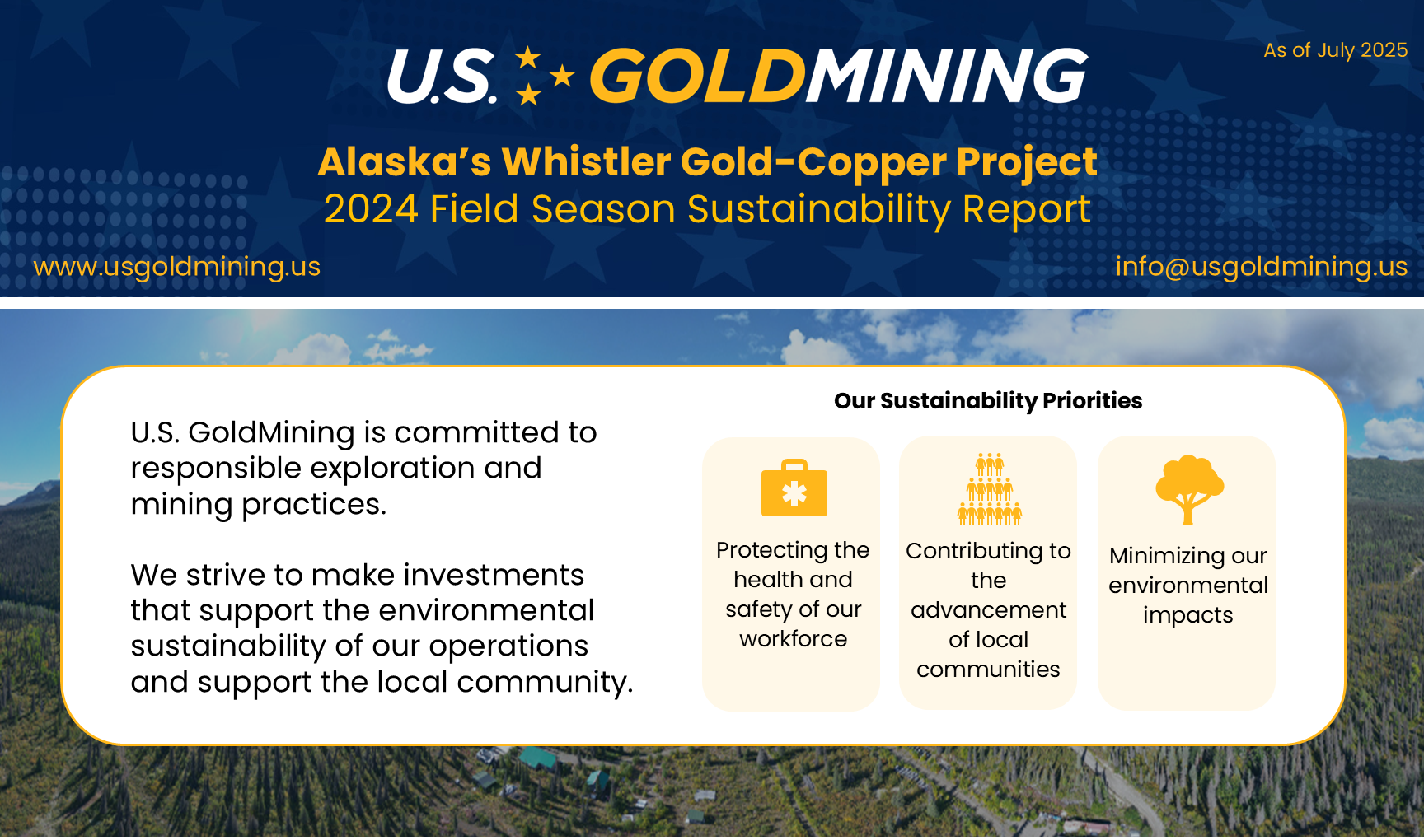 U.S. GoldMining Inc is committed to responsible exploration and mining practices and strives to make investments that support environmental sustainability, social responsibility and strong governance.